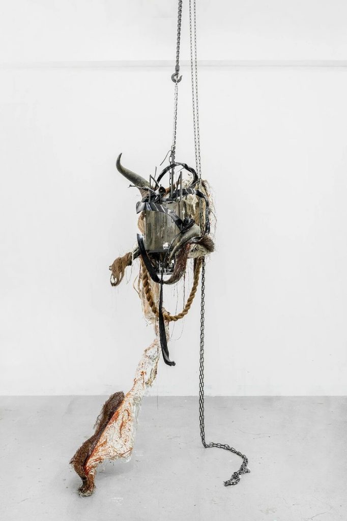 在这个剧场之中,刘璇的装置《超人即是大地》(Der Übermensch sei der Sinn der Erde) 亦回应着尼采的呼喊:“忠于大地吧!不要相信那些向你们述说超越大地希望的人”。她将超人的意象植根于脚下的土壤之中—— 装置的尾巴深深垂向地面,像是在向大地汲取能量,聆听着它的耳语。对刘璇而言,触碰大地,是一种回归自然秩序的亲密姿态,亦是源自信任与安全感的生命动作,更是对自身存有的一种复归。