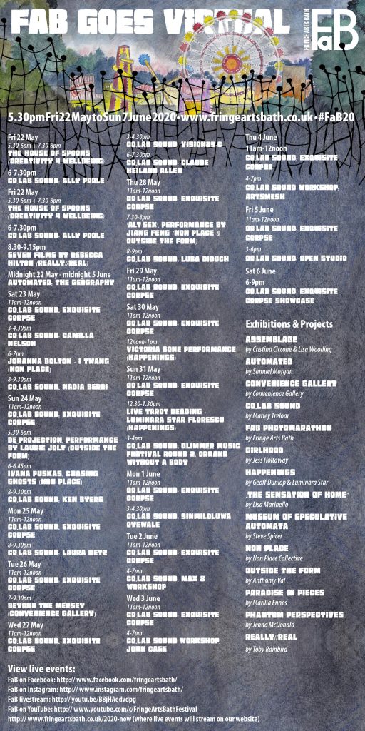 Live-stream in Fringe Art Bath Festival(https://www.fringeartsbath.co.uk/) Curator Project: Co.Lab Sound(colab@fringeartsbath.co.uk)